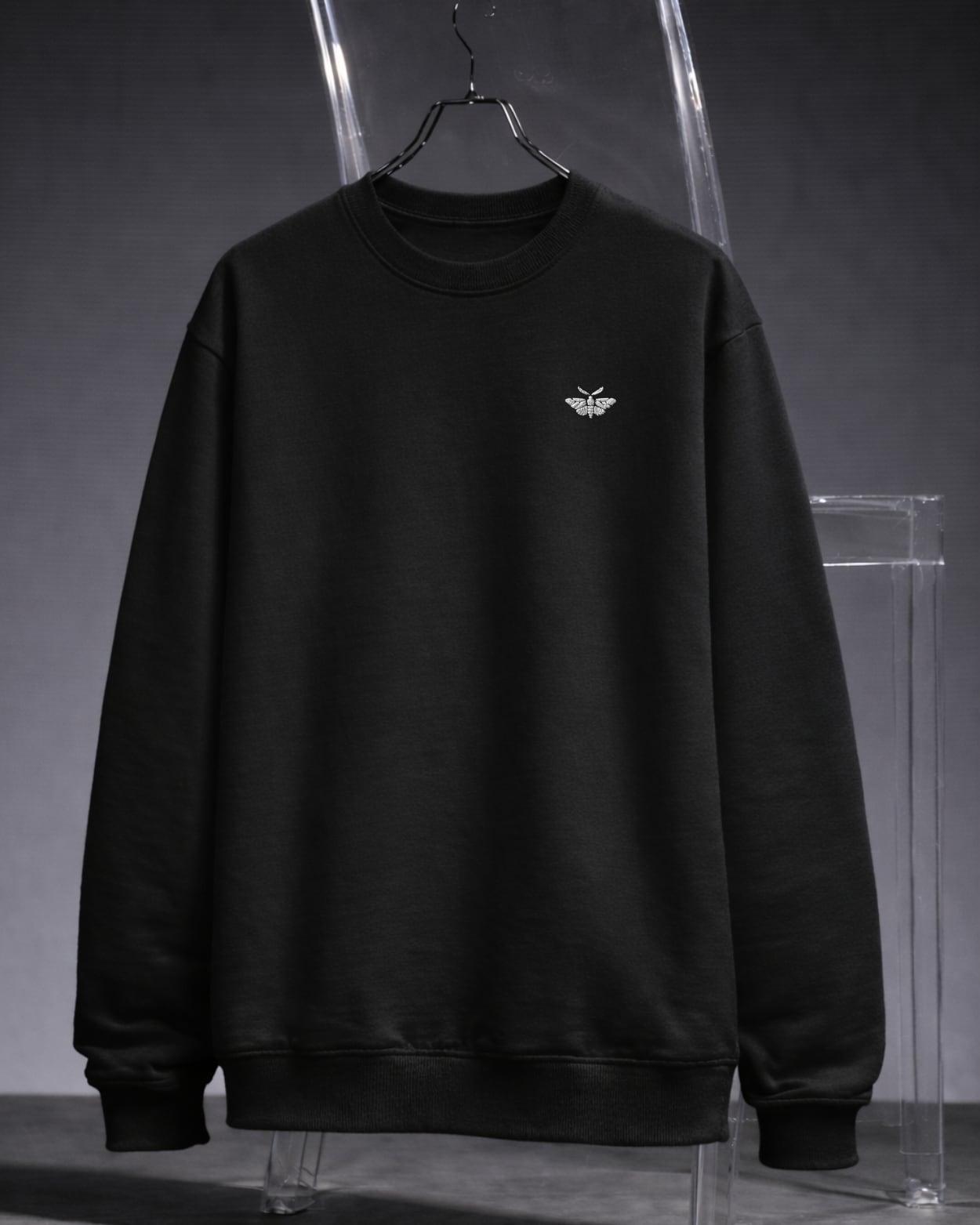 蚕蛾をルーツに設計した刺繍ワンポイントスウェット